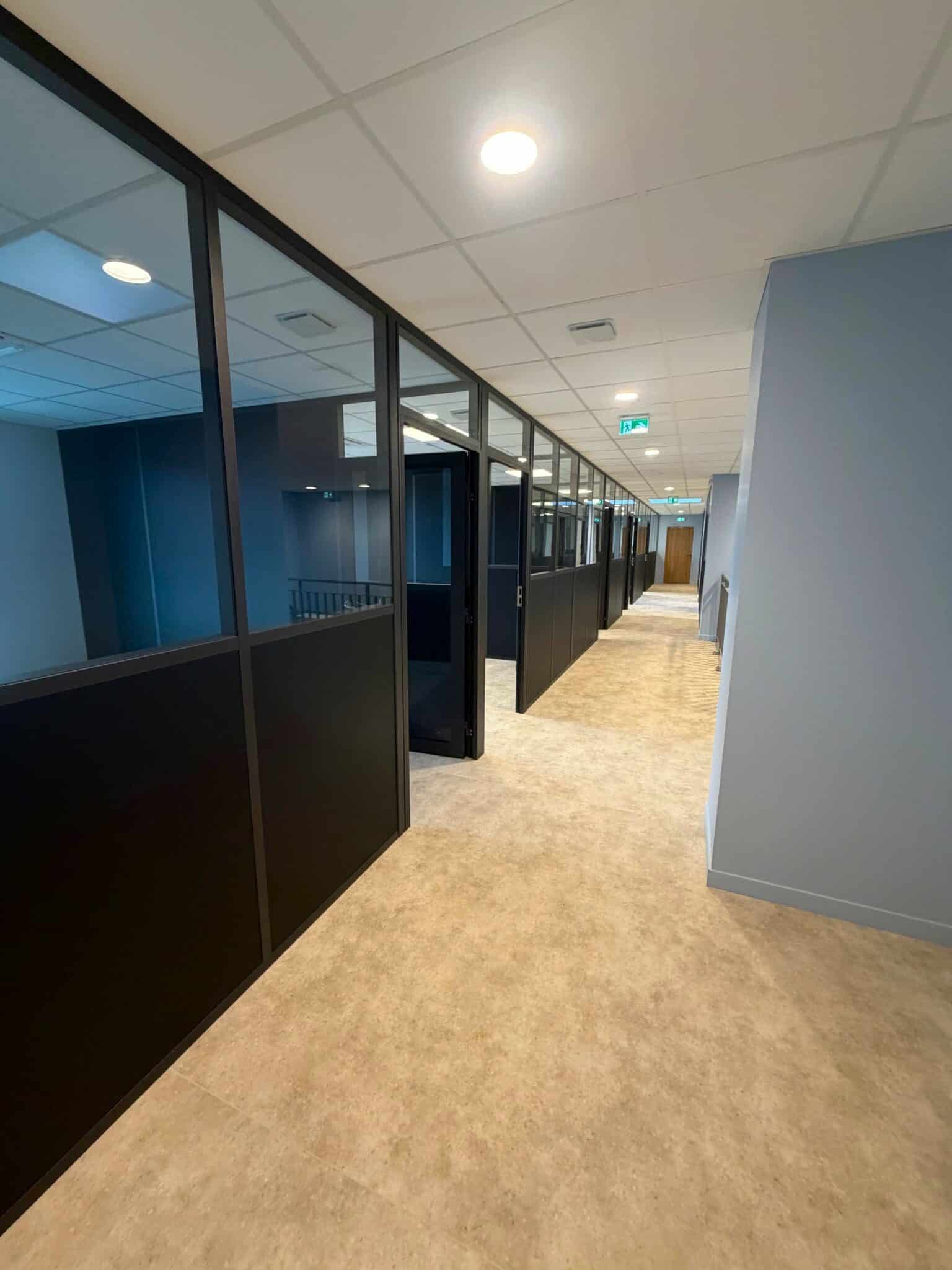 Pour l’aménagement des nouveaux locaux de l’entreprise Timis à Valence, Alt Durand Entreprise a pris en charge une partie du second œuvre. Le projet a inclus la pose de cloisons traditionnelles et de cloisons aluminium, permettant de structurer les espaces de manière fonctionnelle et moderne. Les murs et plafonds ont été soigneusement peints, avec des couleurs choisies pour valoriser l’identité visuelle de l’entreprise. Des faux plafonds ont été installés pour allier esthétisme et praticité, tandis que les menuiseries intérieures et la quincaillerie ont complété l’aménagement.